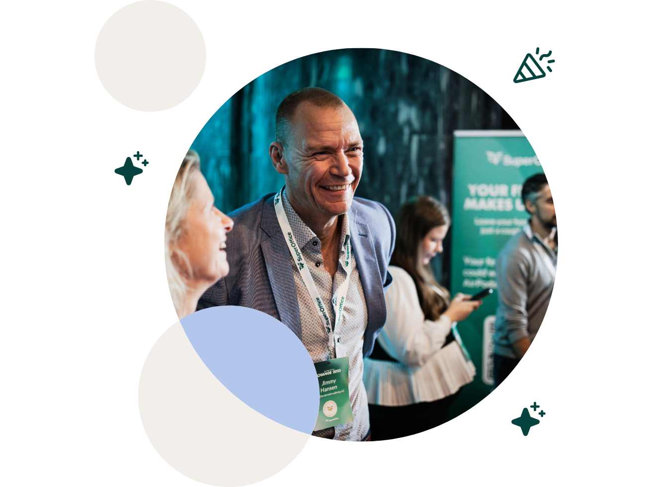 Invitationer, tilmeldinger og deltagelsesstatus synkroniseres direkte med SuperOffice. Events vises som projekter, og deltagere opdateres som projektmedlemmer, hvilket giver salgs- og marketingafdelingen et klart overblik over eventdeltagelsen.