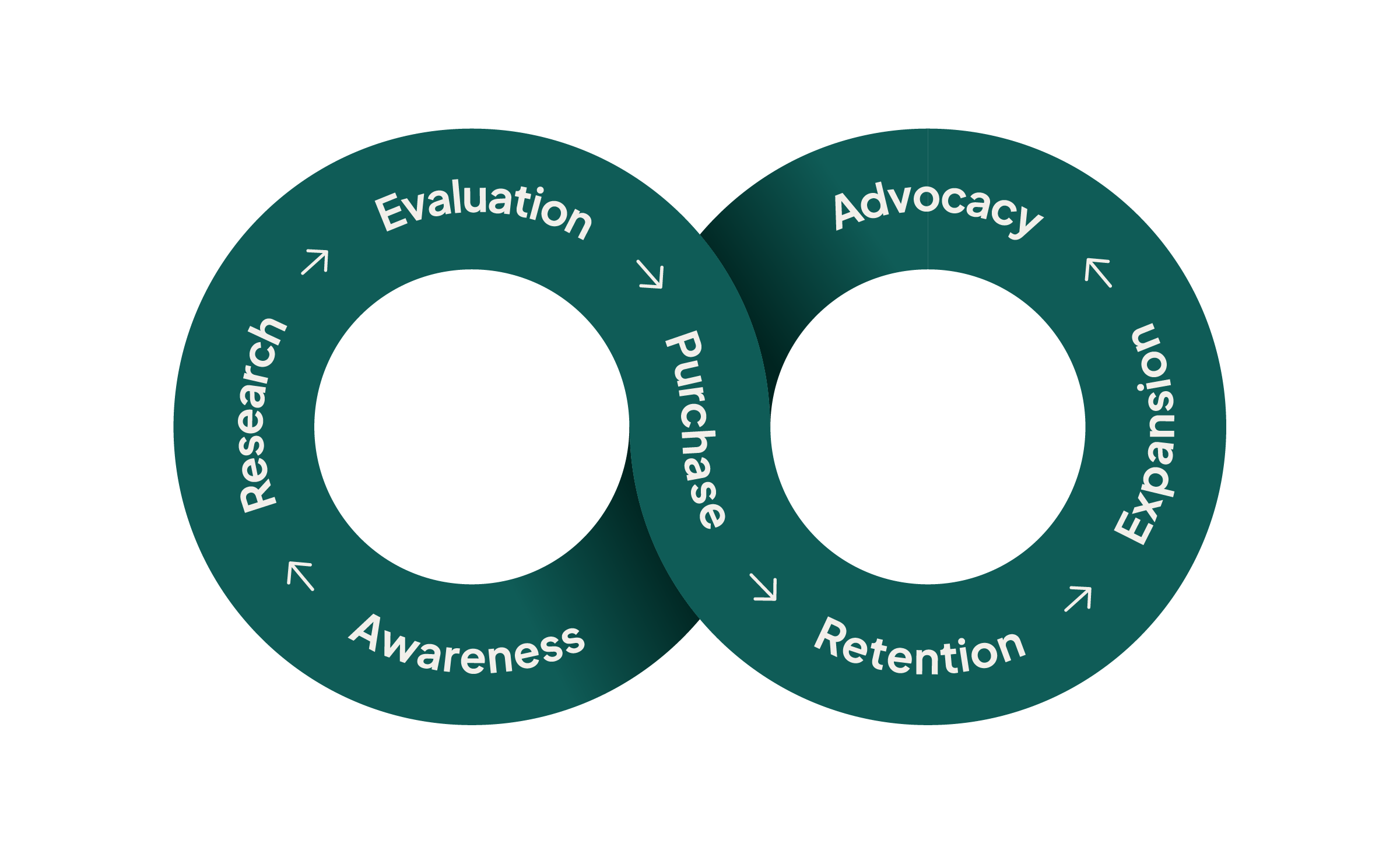 SuperOffice CRM er bygget op omkring vores Relationship Loop, der fokuserer på langsigtet vækst gennem opmærksomhed, informationssøgning, evaluering, køb, fastholdelse, udvidelse og anbefalinger.