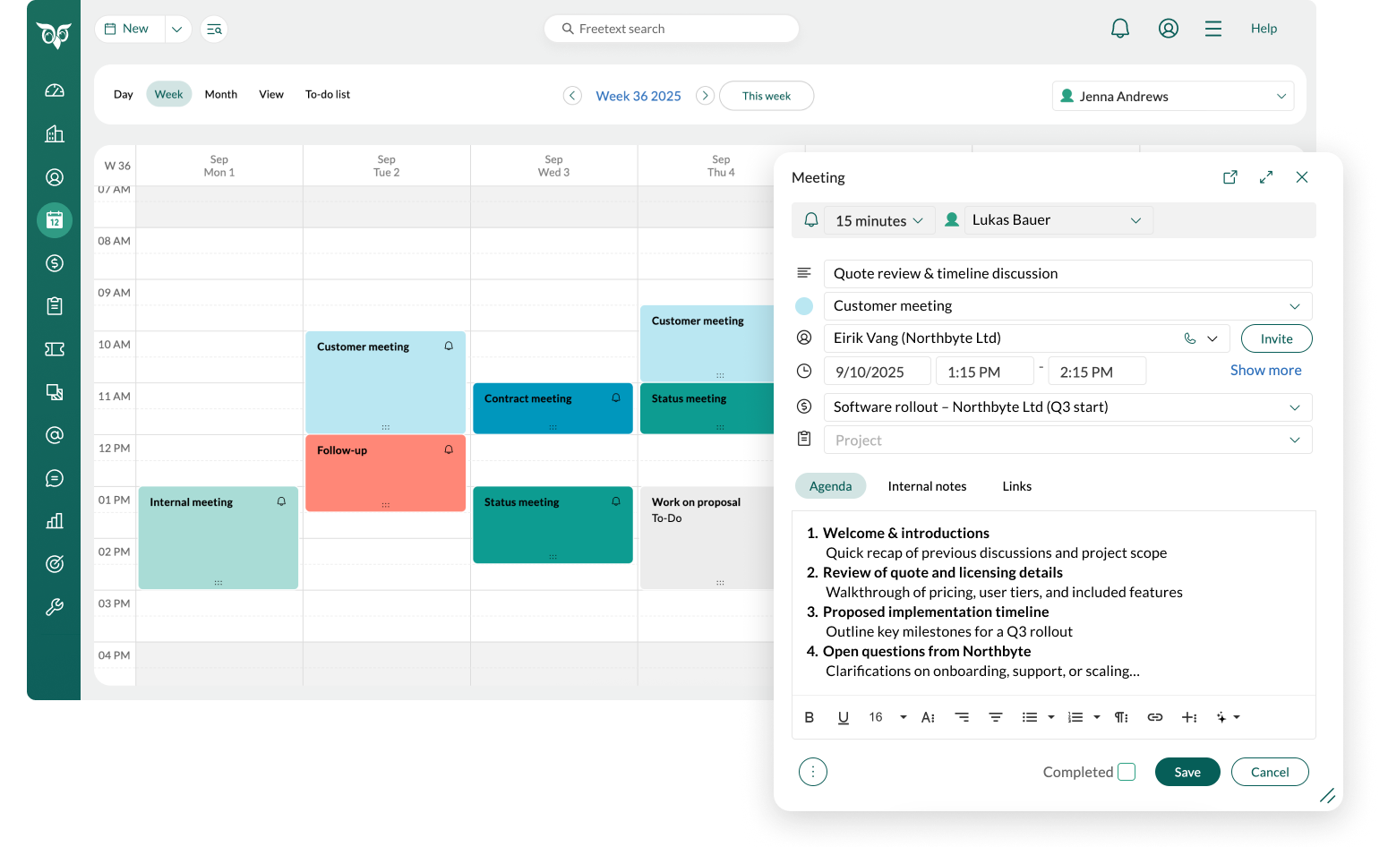 Glem alt om regnearkskaos og manuel dataindtastning, og spar salgstid med SuperOffice. Registrer kundeemne- og kundedata automatisk ved blot at administrere din kalender i SuperOffice. Styrk salget, og opbyg relationer ved at huske samtaler fra SuperOffice CRM.
