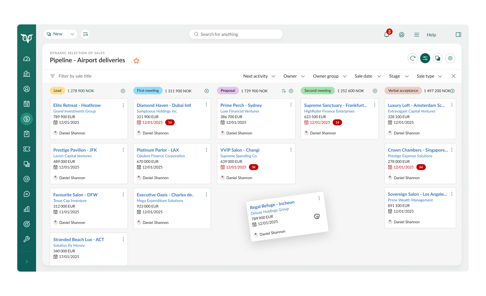 - Forenkle opdateringer med træk-og-slip mellem salgs faser