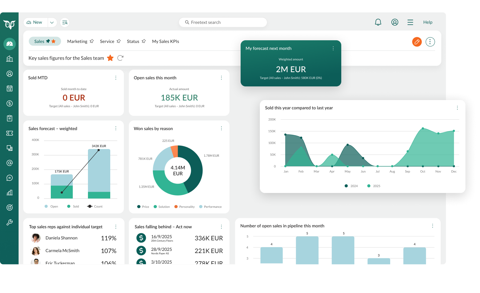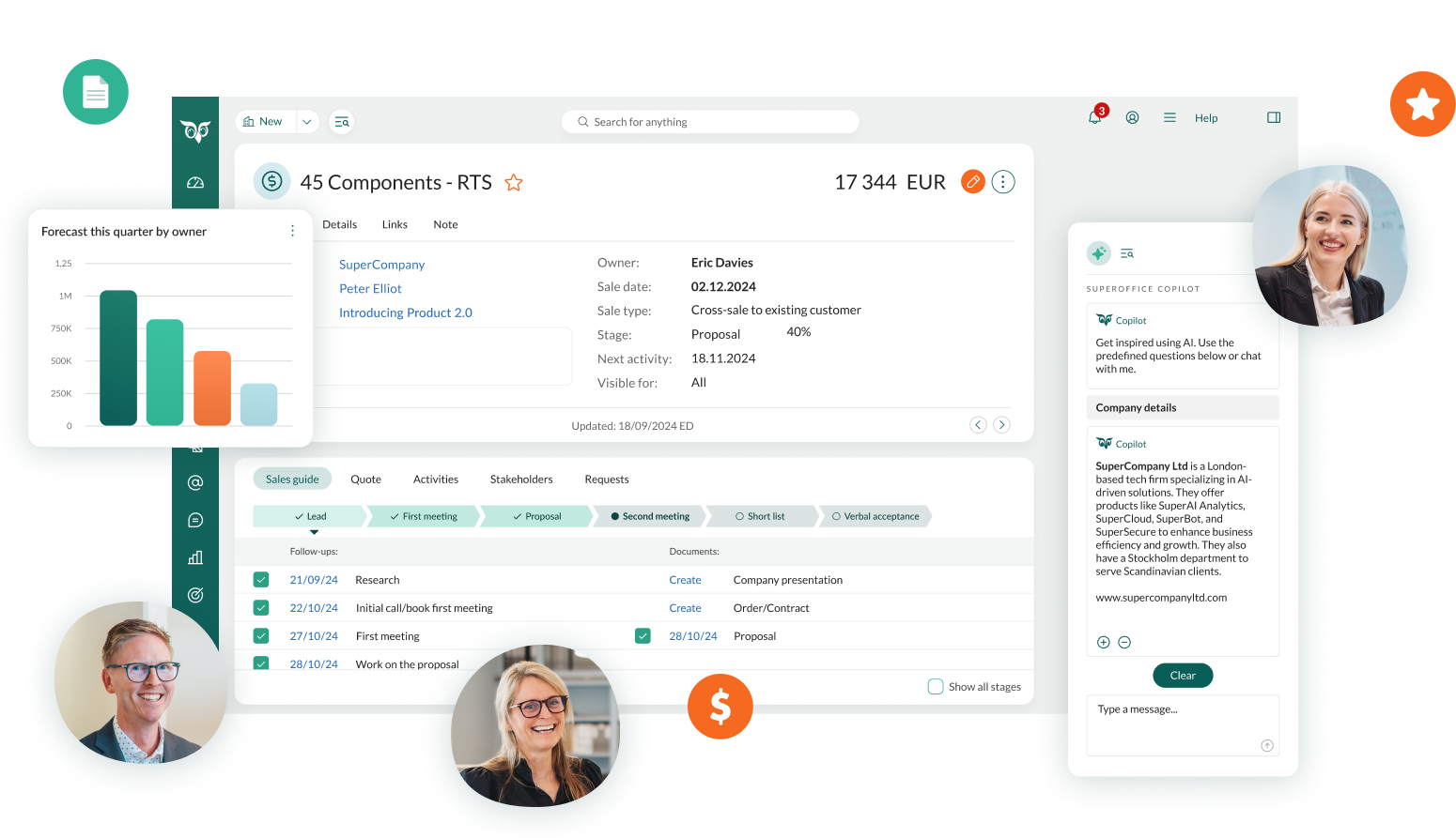 Prioriter salgstiden med SuperOffice Sales – et intuitivt CRM-system, der automatisk indsamler information. Øg dit salgsteams effektivitet med hjælp fra AI : giv salgslederen bedre indblik, overgå lederens mål, mere tid til salg og øget omsætning for sælgerne.