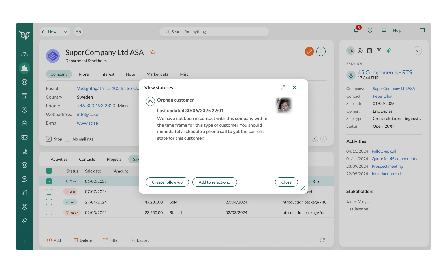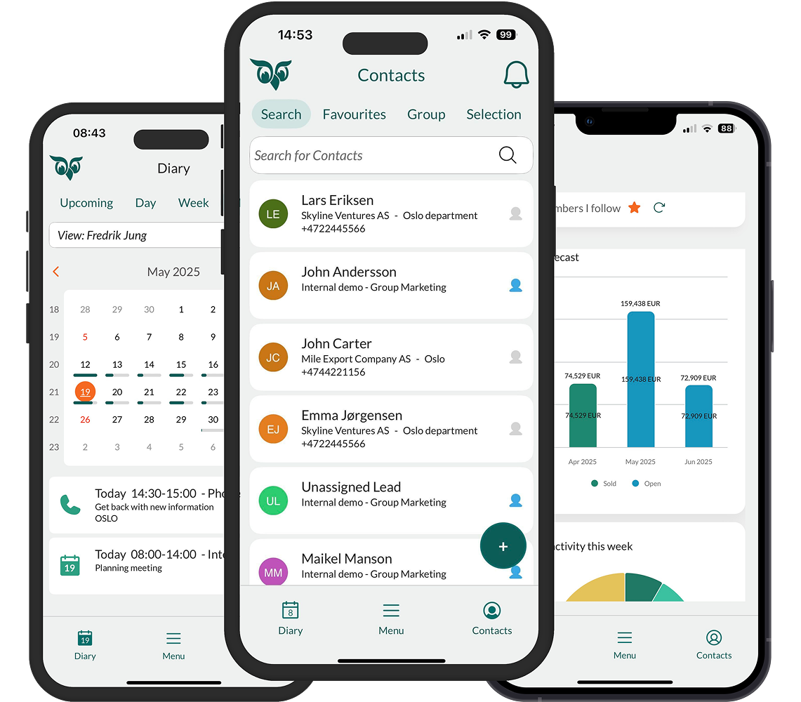 Kom foran de mest kvalificerede kundeemner. Øg din vinderrate med bedre data og synlighed over aftaler. Opbyg kontakter og varige relationer med kunderne – i ét værktøj.