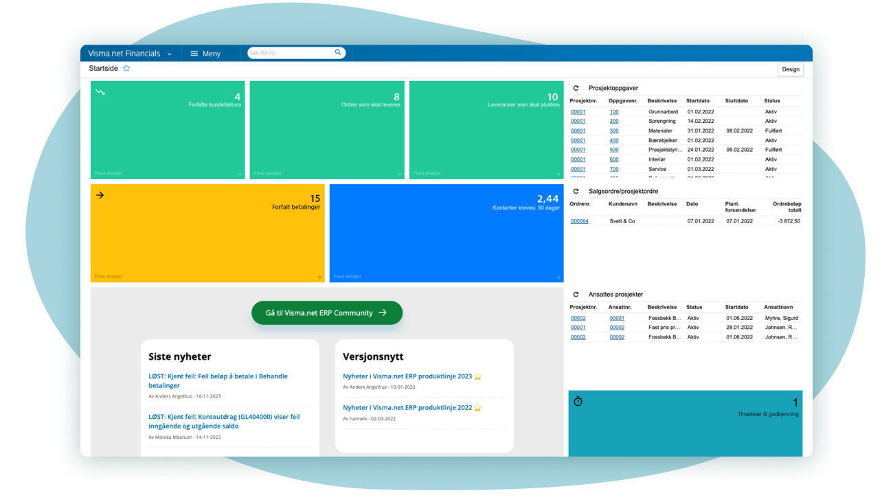 Visma ERP system is a business solution that covers the company's needs within financial management, logistics, projects, reporting, analysis as well as payroll and HR. With good information and process flow, you free up time and resources that can be used for growth and value creation.